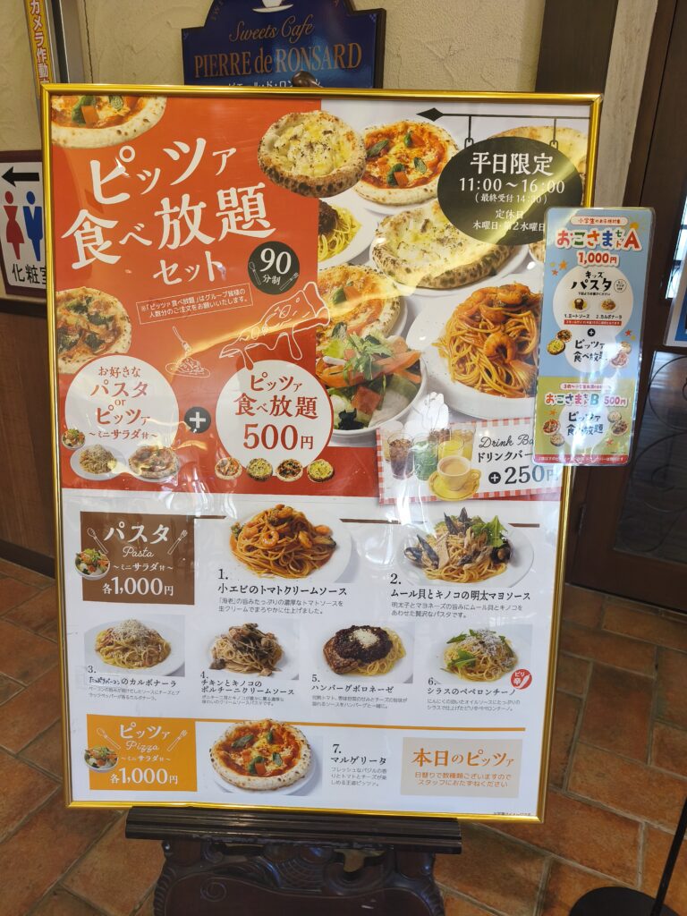 特に平日ランチでは「ピザ食べ放題オプション」や、「パスタ+ピザ食べ放題セット」などのメニューも人気です。