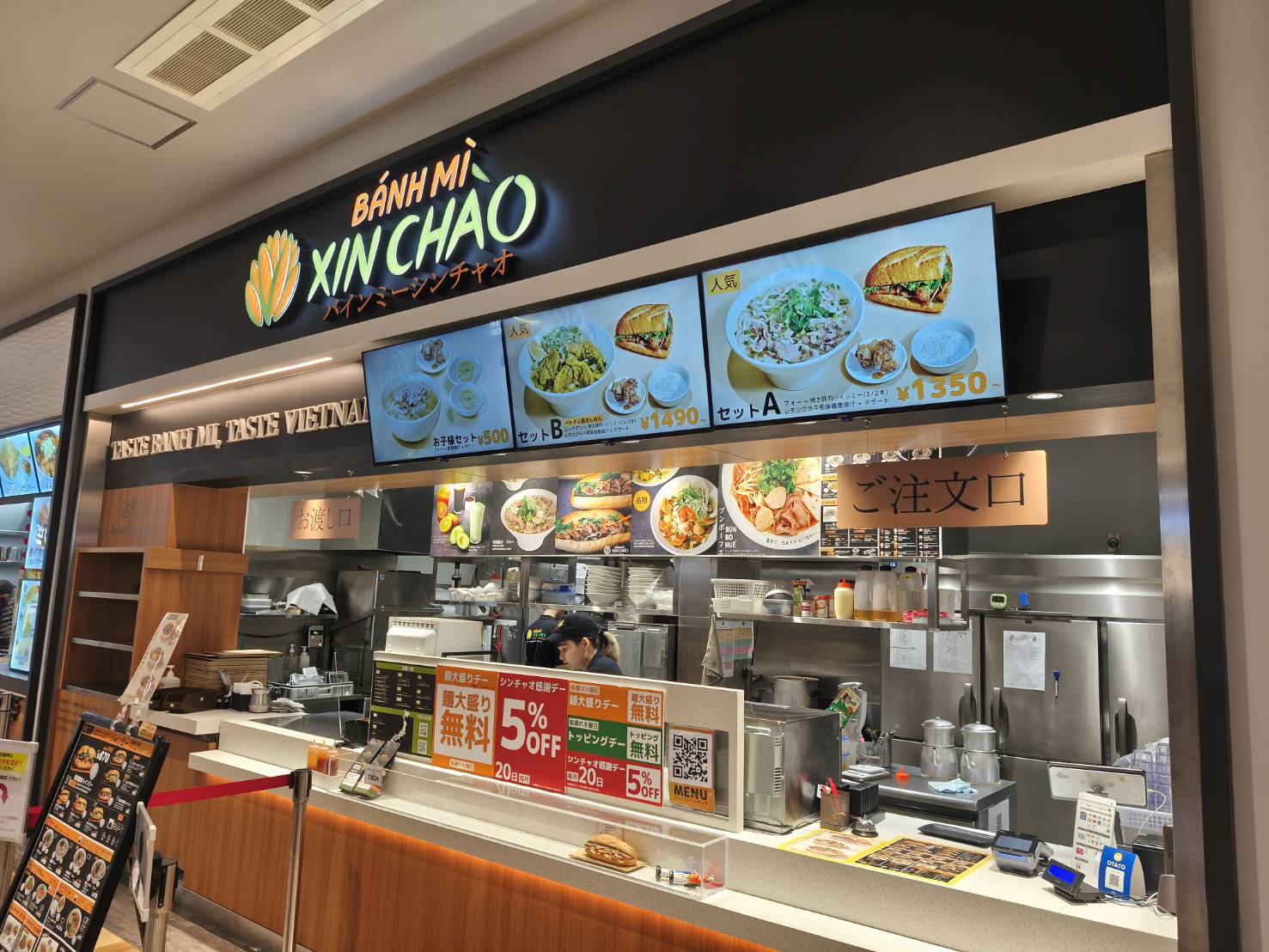 バインミーシンチャオ(Xin Chao)は、フードコートでベトナム風サンドイッチ「バインミー」を気軽に楽しみたい日に寄りやすいお店です。口コミでは、パンの食感の好み、具材のバランス、辛さやパクチーの有無(体感)、提供スピード、混みやすい時間帯、テイクアウトの受け取りやすさなどを書いておくと、次に行く人の参考になります。営業時間やメニュー内容は変更の可能性があるため、来店前に要確認でお願いします。